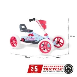 Look at this adorable BERG Buzzy Bloom! Four wheel stability is the safest option as they learn to pedal. This cute looking go-kart has an adjustable seat & steering wheel so will grow with your child as they grow. Years of safe fun guaranteed! We will include a full sheet of blossom stickers, so your little one can get creative and decorate to suit their own personal taste.