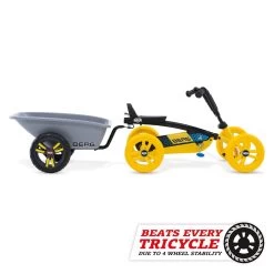 Want to make your BERG Buzzy even more fun? The BERG Buzzy Trailer gives you lots of fun options to add to your little ones experience. Throw in a picnic basket, take your toys on an adventure or go on a nature treasure hunt! This easy to attach trailer comes with the required tow bar & wheel stickers so you can match it to your cart. This trailer is designed to suit the BERG Buzzy.