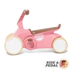 The BERG GO² is our smallest kart but don’t underestimate this 2in1! Your child will learn to scoot or pedal much faster and can do it all on one little go-kart. First, you can keep the pedals folded up so that your little one can scoot. Use it as a push car without the pedals or the rear wheels getting in the way. Fold down the pedals when your child is ready for the next stage. Your tiny tot will be safe with four wheels keeping them firmly grounded, so you won’t need to worry about them tipping. A safe solution!