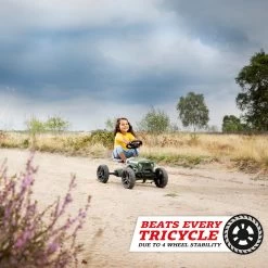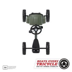 With its Jeep grill, solid hood, unique steering wheel and off-road tyres, this Jeep Buzzy Sahara offers unforgettable driving pleasure. On this Jeep your child can tackle any terrain, the direct drive system makes pedalling super light and they can go on adventures effortlessly! The Jeep Buzzy Sahara’s four EVA tyres keep the go-kart firmly on the ground. Your child will feel secure and ride in comfort as you adjust the seat and steering as they grow.