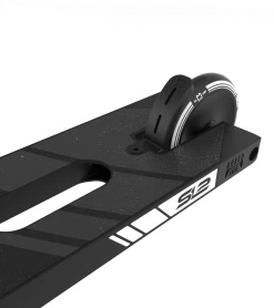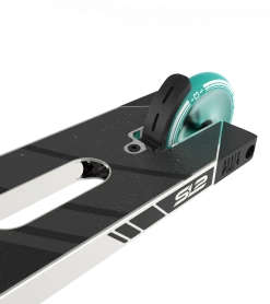 Lightweight Forged neck tube, Improved deck cutouts, reinforced over mold brake, plastic dropouts, wider fork, 6mm bolts everywhere (even the brake), skinny grips and our new CORE alignment system (CAS). We saved no expense when it came to improving this scooter, every part has been custom tooled from the ground up.
