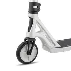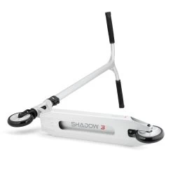 The deck itself weighs in at just 1.2kg, bringing the complete down to an astonishing 3 kilograms. The Shadow 3 is a true performance product, sporting the all-new Helios Hollow-Spoked Wheels. These wheels have an optimised core to PU ratio which reduces weight, increases rigidity and maximises power transfer for maximum speed. The wheels themselves rotate around our all new Ultra-Sonix bearings which boast unparalleled speed. The forks have been meticulously refined, cutting as much excess weight off them as possible to create a minimalist, lightweight design which improves the level of control and overall performance of the scooter. Aesthetically the deck now has top and bottom cut-outs that have been positioned to reduce weight even further without compromising the strength that riders demand. The extrusion has been perfectly tapered to maximise foot space and reduce unnecessary weight.