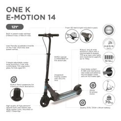 E-MOTION 14 is a foldable 2-wheel, light-up foldable electric scooter for teens (aged 12y+). With a powerful motor and quality battery, built-in front suspension, patented folding system, user-friendly throttle, anti-slip, light-up deck, dual-braking system, 2-height adjustable T-bar, and ISO bell and light, E-MOTION 14 is a reliable and fun 2-wheel e-scooter designed with teens in mind!