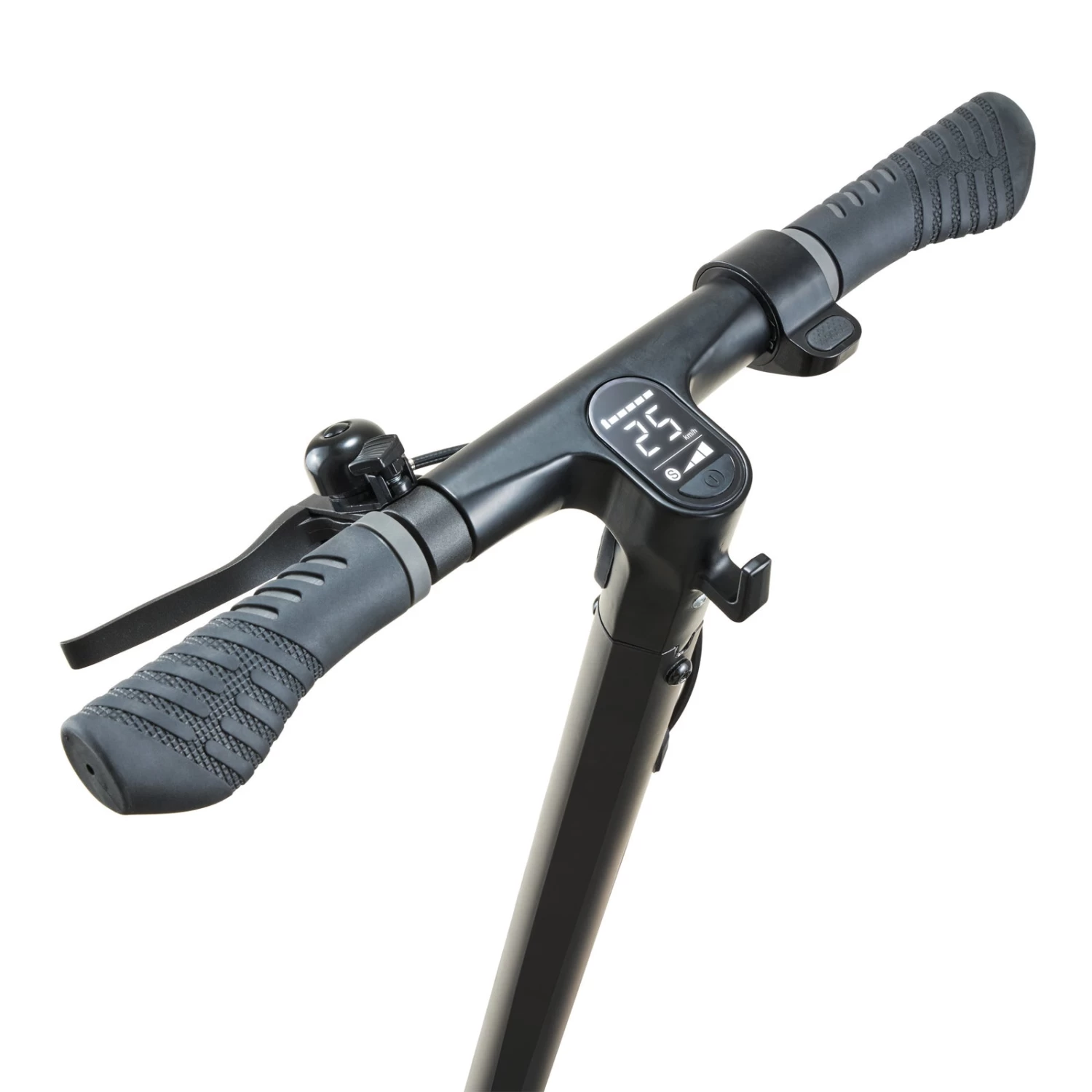 - LCD screen with backlight displays the battery level, speed mode and current speed.