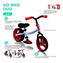EASY TO CARRY BALANCE BIKE – Ergonomic handle, made from soft TPR, is integrated in the rear of the seat to easily carry the GO BIKE DUO wherever you go.