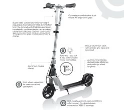ROBUST 2-WHEEL SCOOTER DECK DESIGN FOR TEENS AND ADULTS | Robust aluminium deck structure with comfortable, anti-slip grip tape and a kickstand supports up to 100kg. The extruded aluminium rear brake delivers brake efficiency and prolongs wheel longevity.