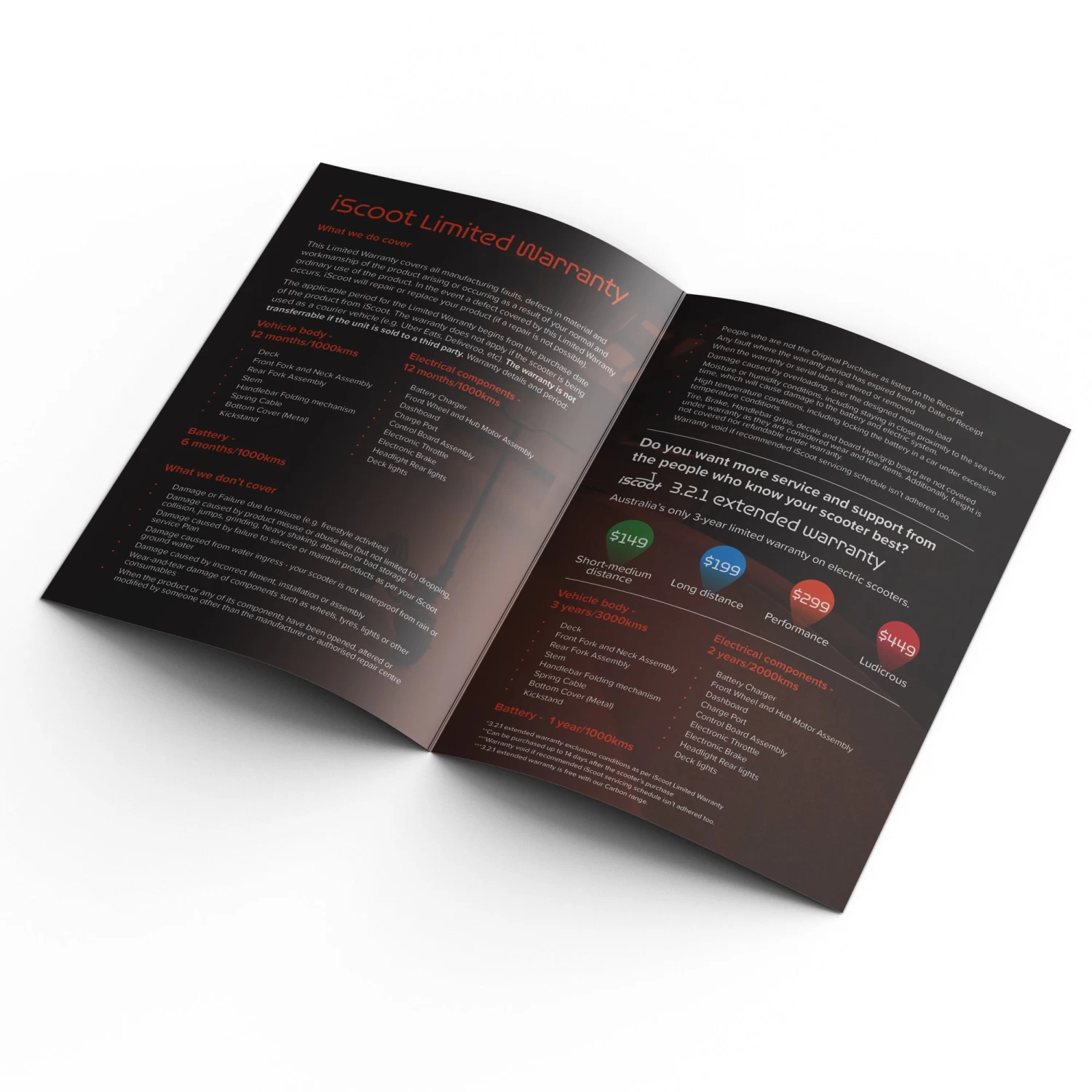 Please note the following 3.2.1 Extended Warranty exclusions apply as per iScoot’s Limited Warranty: