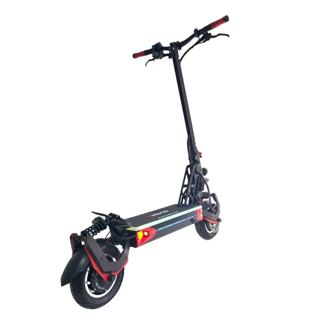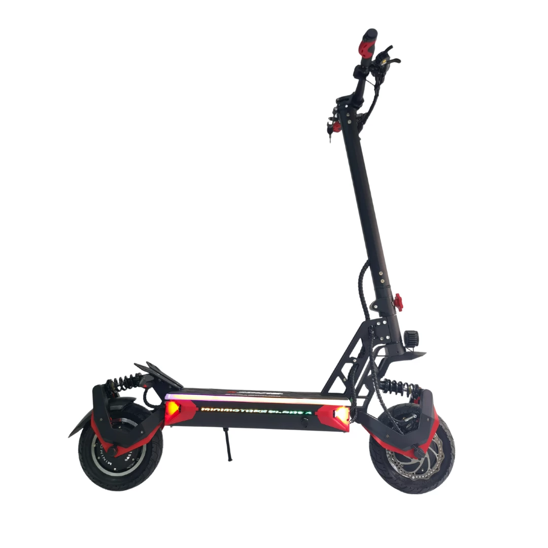Packing a motor power of 4000W, with a range of up to 85 km, this scooter will not disappoint boasting top speeds of just under 80 km/h on a single charge (limited to 25km/h). This Blade X Minimotors Edition comes with a minimotors controller, eye throttle and motor.