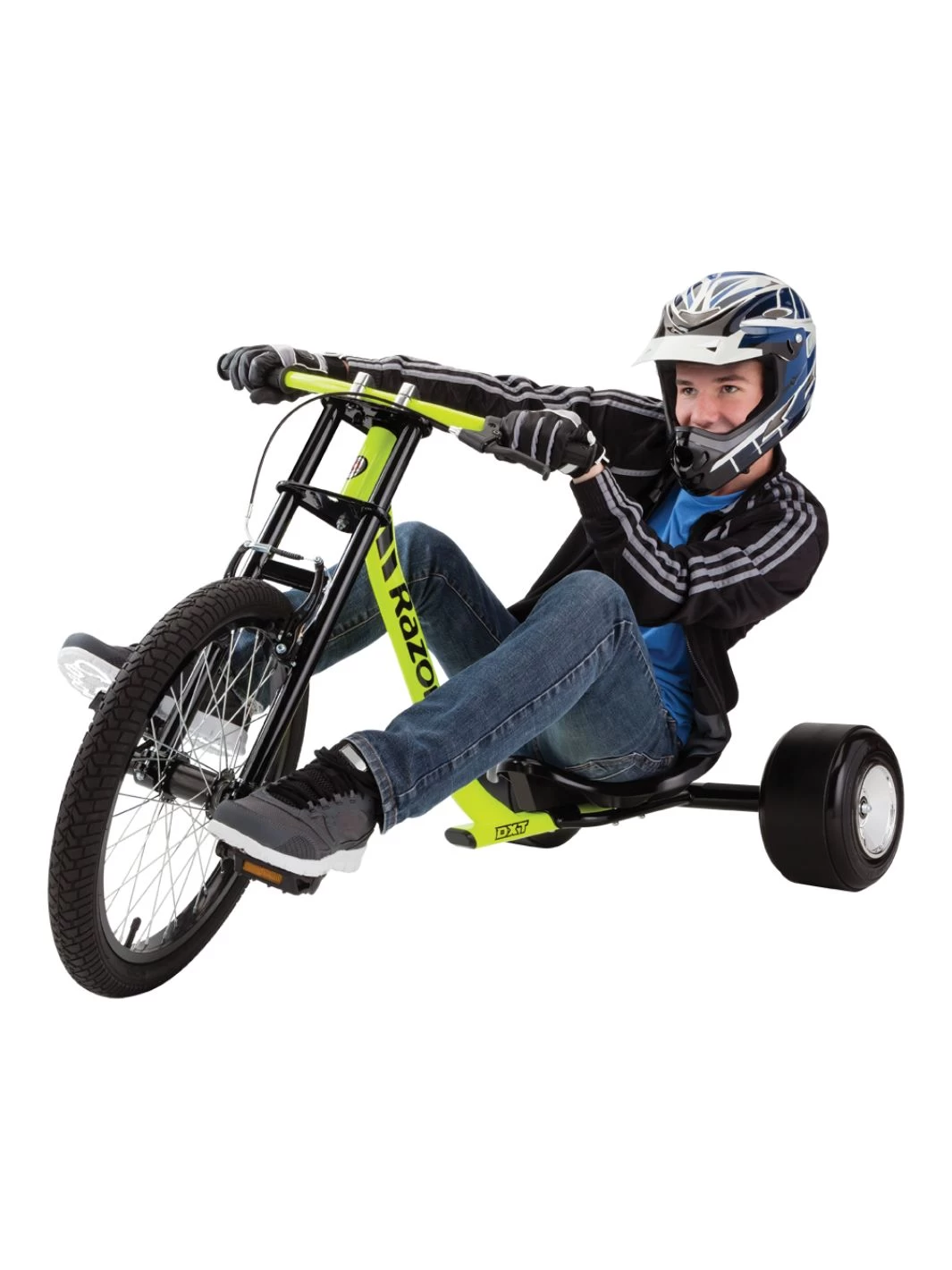 The innovative Razor DXT Drift Trike packs a punch with a thrilling ride and unique features. From the super-stylish to the wild and crazy, this high-performance, adrenaline-pumping rides set a new standard for fun on wheels.