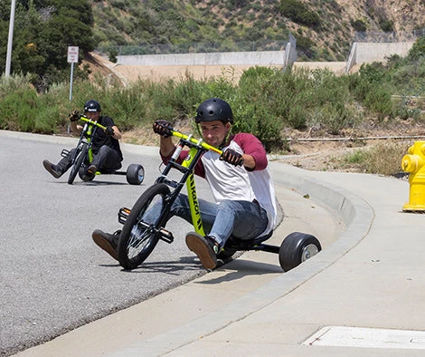 There you are. You and your friends, staring at the sickest downhill ride of all time. If only you had a drift trike that’s as extreme as you are. Well, you’re in luck. The Razor DXT with its moto-style steel construction and 10” slick rear wheels built for edge-of-your-seat downhill drifting in the straightaways while handling the tightest of curves. With the DXT your downhill racing just got way more radical.