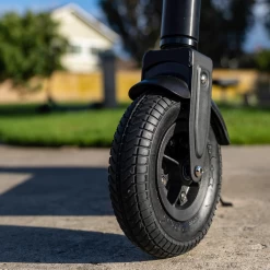- Large 8” (200 mm), pneumatic (air filled) front tyre and 8” (200 mm), airless, flat-free rear tyre soften even the roughest terrain for a smooth ride, every time.