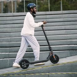 With 10 inch pneumatic tires, rear disc brakes, and a redesigned brushless motor, the Ninebot Kickscooter F-Series is the most advanced yet.