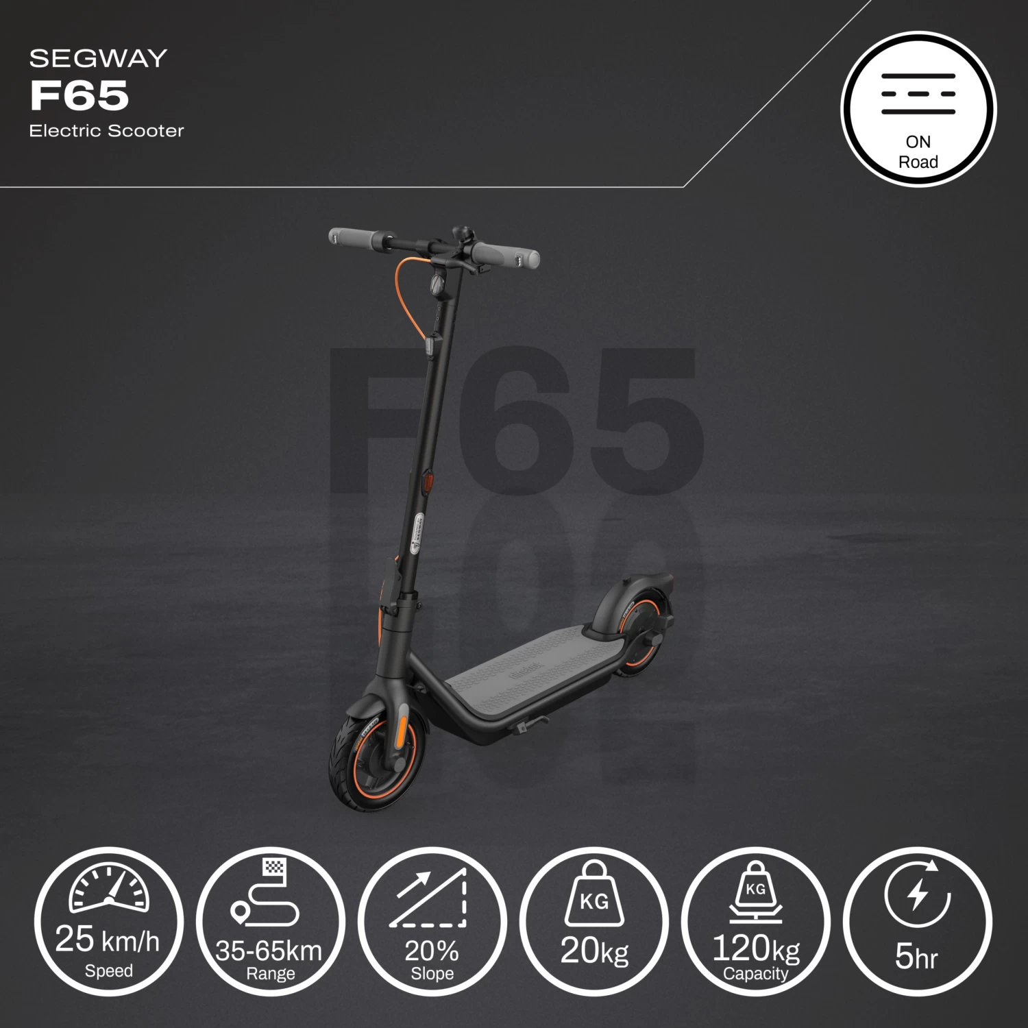 Segway-Ninebot Kickscooter F65 comes with wide footboards, ergonomic grips, automobile grade all-season tyres and a comprehensive lighting system that makes daily cruising a breeze.fe.